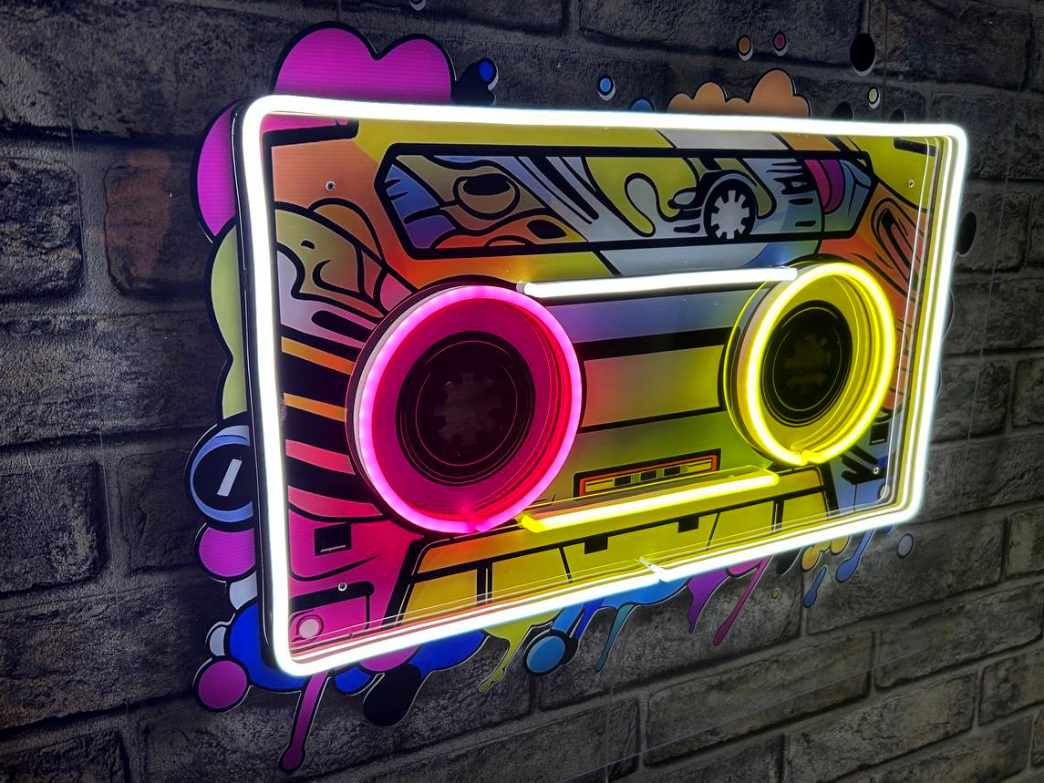 - Универсальность дизайна: принты и формы неоновых линий подбираются под разные стили — от минимализма до лофта и поп‑арта.